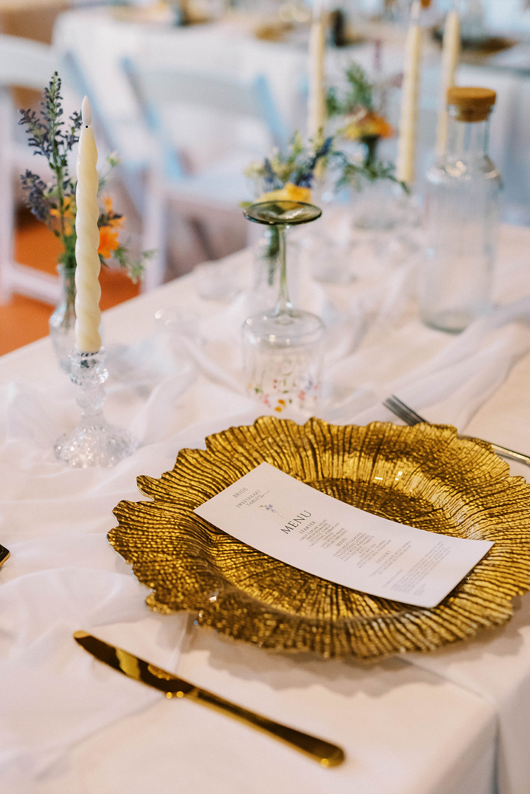 Soft white sheers danced in the breeze, gold accents caught the sunlight, and candlelight flickered through the evening, creating a glow that was both magical and intimate. The design embraced nature’s beauty while adding a touch of sophistication—wildflower arrangements, sheer linens, and thoughtfully curated touches that made the space feel warm, inviting, and unforgettable.