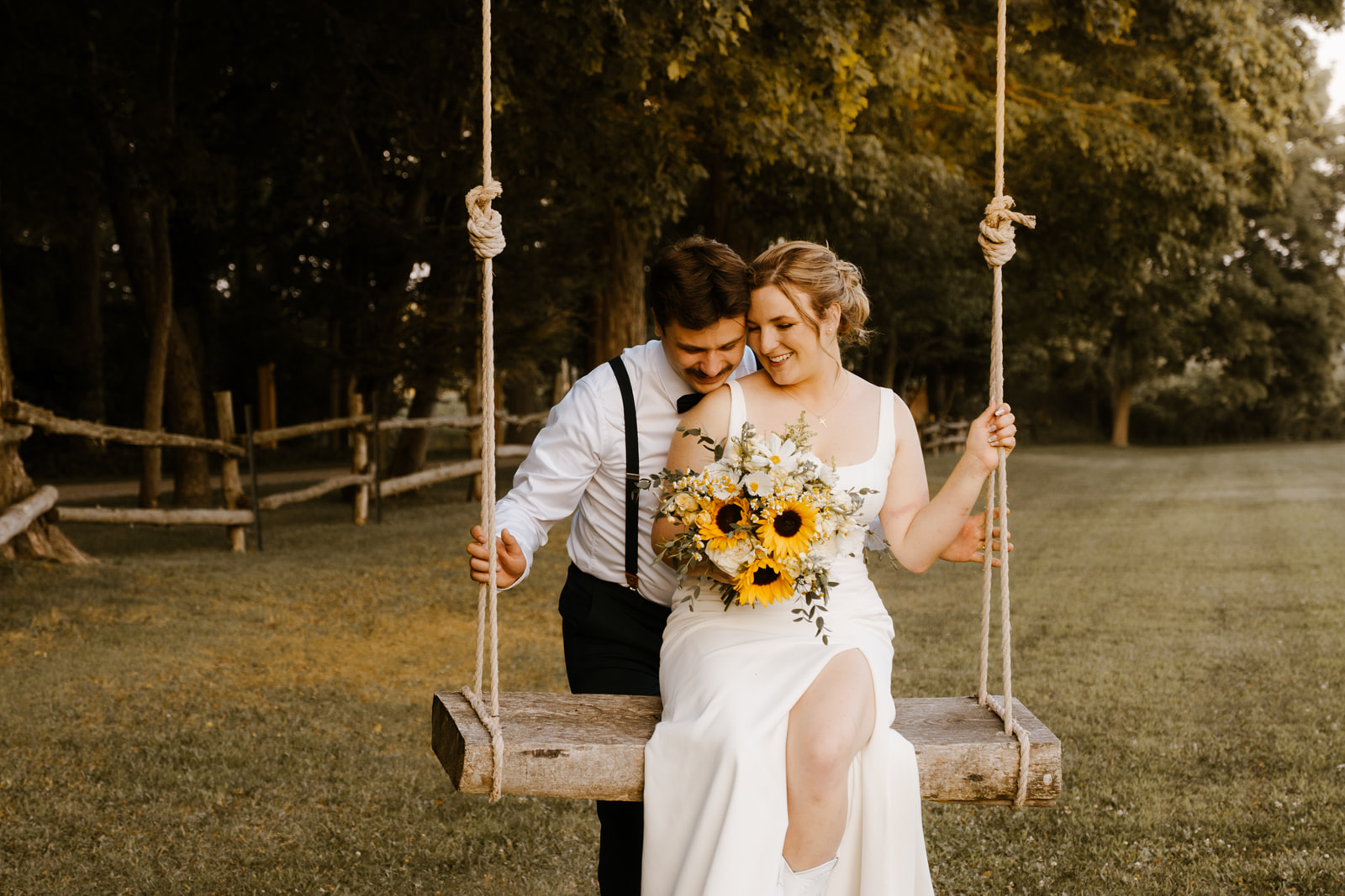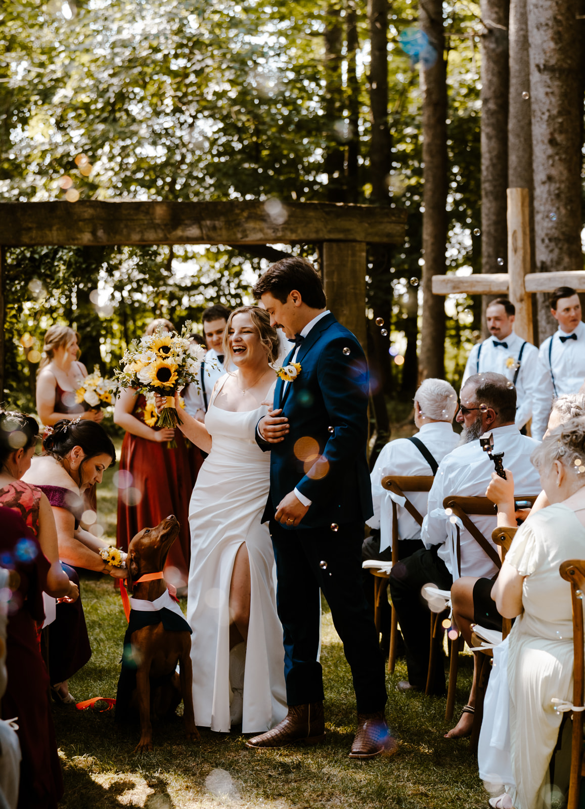 staffNestled in the heart of Sparta, Wheatfield Estate provided the perfect backdrop for Connor & Maria’s joyful August wedding. The ceremony took place in a secluded woodland clearing, where rustic wooden chairs and towering trees created a naturally romantic setting. Their theme of sunflowers and daisies added a bright, cheerful touch that carried through the day.